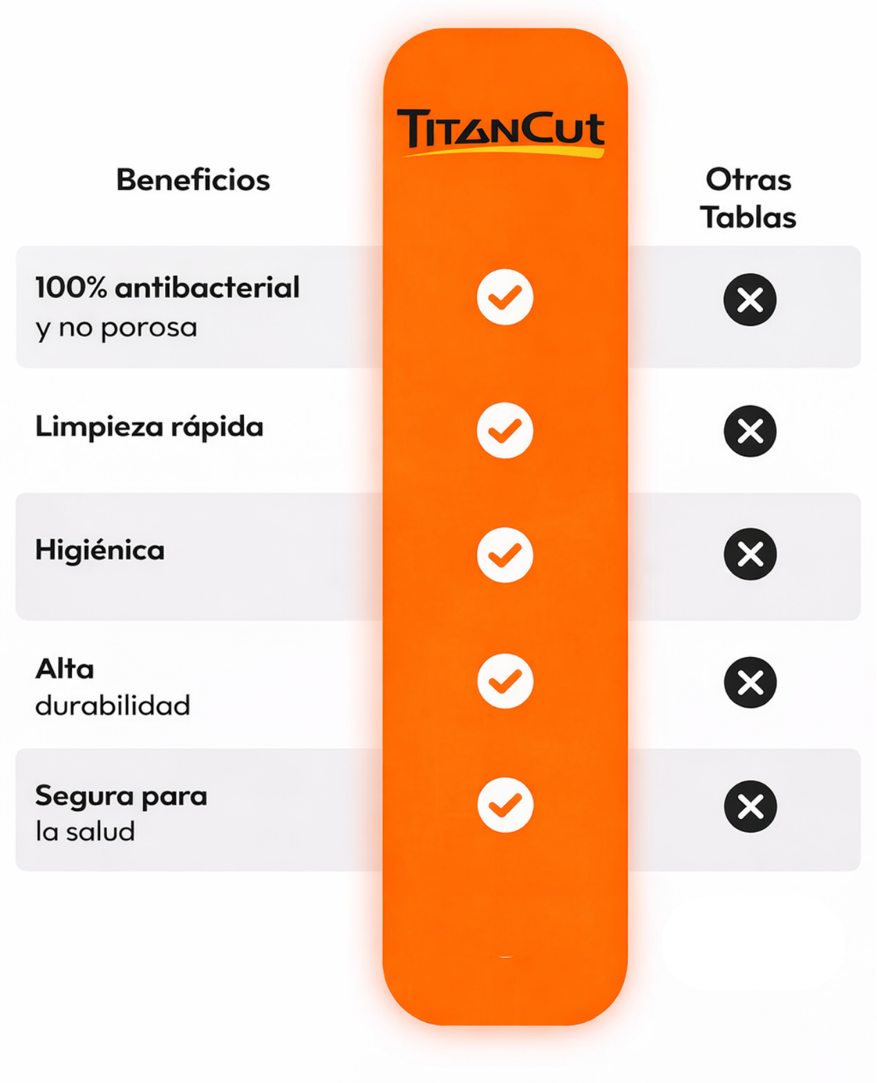 ¿Sabías que los microplásticos están asociados a enfermedades crónicas? Con tu nueva tabla TitanCut, podrás cocinar con tranquilidad.