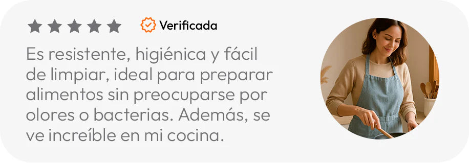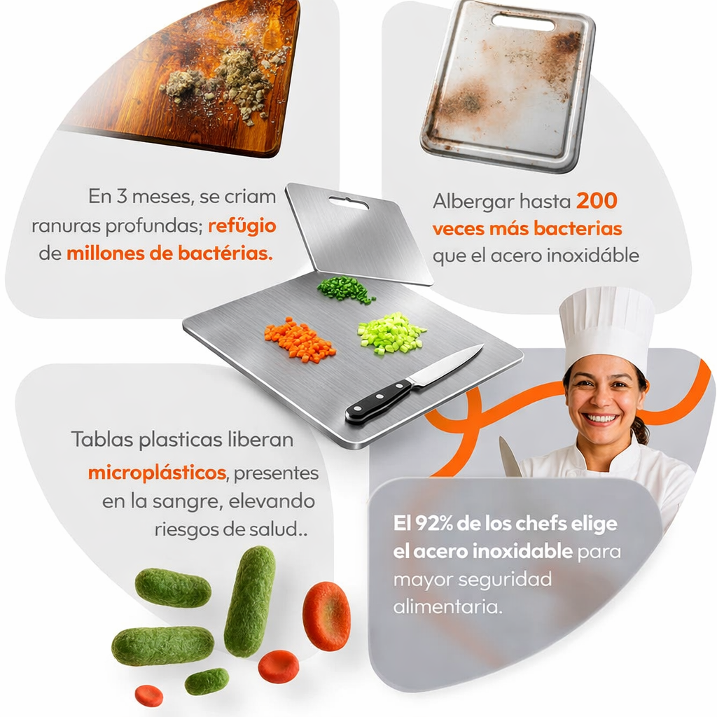 “Trabajo muchas horas cocinando y esta tabla de corte en acero inoxidable realmente marcó la diferencia en mi rutina. Es higiénica, no retiene olores ni bacterias y se limpia en segundos. El material es súper resistente, no se raya con facilidad y mantiene mis cuchillos en excelente estado. Además, su diseño moderno queda perfecto en la cocina y es muy estable al usarla. El envío fue rápido y el empaque impecable. Se nota que es un producto premium y duradero.”