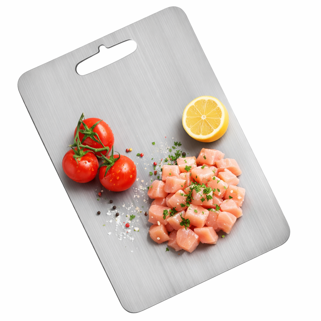 - 1 tabla de corte TitanCut de acero inoxidable (29×20 cm), material antibacteriano, seguro para alimentos y fácil de limpiar
